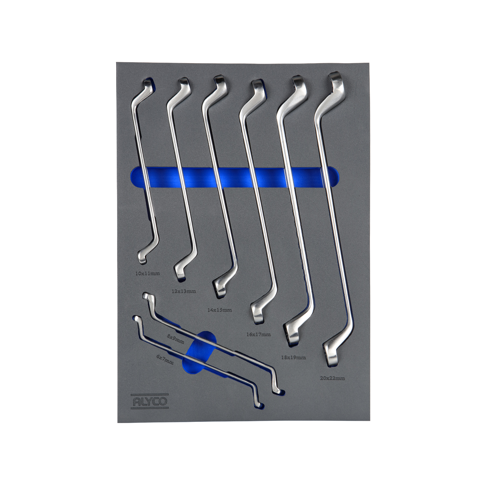 bandeja de espuma con llaves acodadas para organización y seguridad de herramientas en el hogar o talleres.