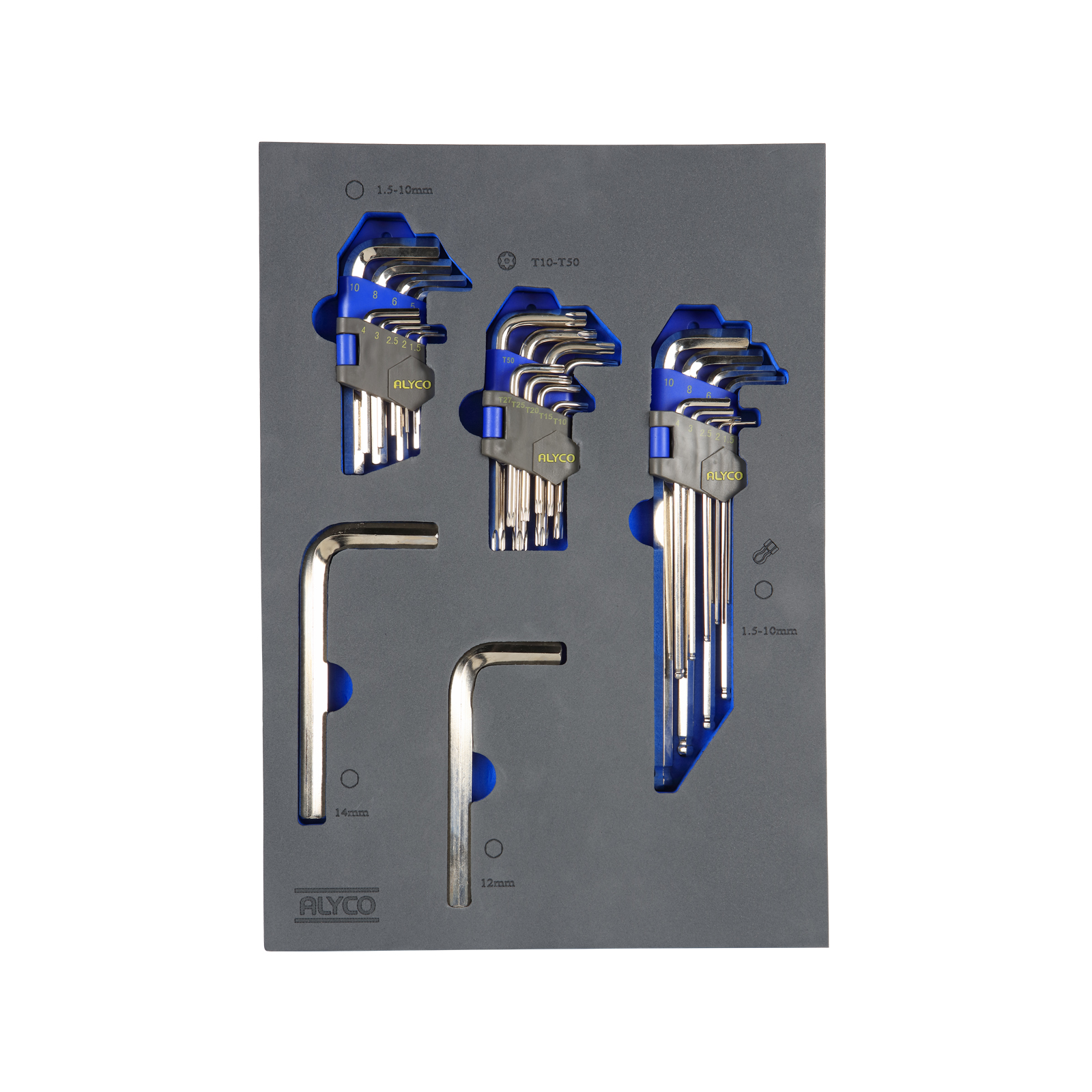 bandeja de espuma con llaves Allen, dimensiones 280x400x35 mm, ideal para organizar herramientas y facilitar su transporte y acceso.