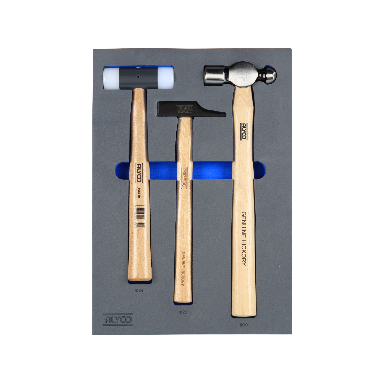 Bandeja de espuma con martillos 280x400x35 mm, ideal para organización de herramientas y protección de componentes frágiles.