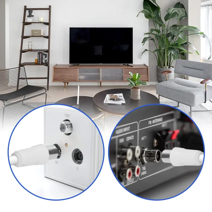 Cable de TV 1,5 m blanco, alta calidad, compatible con dispositivos de audio y video, ideal para conectar TVs y reproductores.