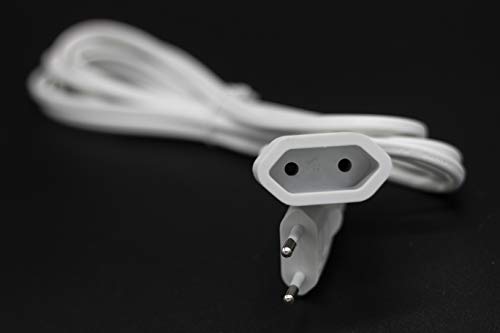 Prolongador de enchufe, con conectores planos. Esta manguera tiene una longitud de 5 metros y es de color blancao. En sus extremos tiene un conector de enchufe macho europeo y una clavija hembra europea, ambos planos con unas medidas de 2 cm de alto y 0,75 cm de ancho. Tiene una potencia de 1300 W. Un elemento indispensable en tu hogar u oficina para prolongar tus aparatos eléctricos.