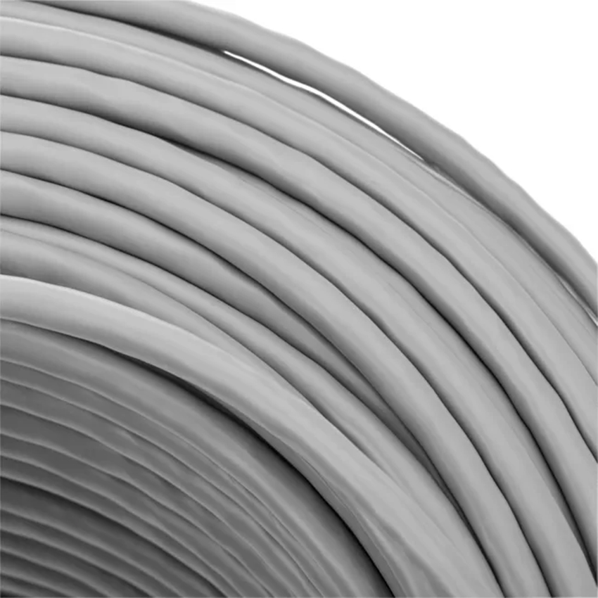 Cable de conexión UTP rígido, de categoría 6. Se presenta en una bovina de 100 metros, diámetro 06´6 mm, color gris y material PVC retardante para hacerlo más seguro. El material dieléctrico es HDPE, el número de pares es de 4 trenzados y el material separador de los mismos PE. La frecuencia es de hasta 250MHz. La respuesta frecuencial es de 1Mhz - 2dB/100 m - 74'3 dB, 10 MHz - 6dB/100 m - 59'3 dB, 20 MHz - 8'5 dB/100 m - 54'7 dB, 31`25 MHz - 1'7 dB/100 m - 51'8 dB, 62'5 MHz - 15`4 dB/100 m - 47'3 dB, 100 MHz - 19'8 dB/100 m - 39'7, 250 MHz - 32'8 dB/100 m - 38'3 dB.