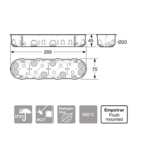 • ESPECIFICACIONES: Caja empotrar para mecanismos | 281x67x45 mm | Cuádruple