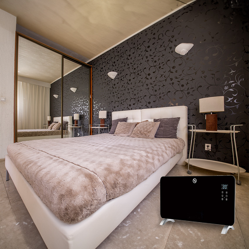 emisor térmico con WIFI, emisor térmico negro 38 x 92,6 cm, emisor con pantalla LCD, mando a distancia y termostato regulable