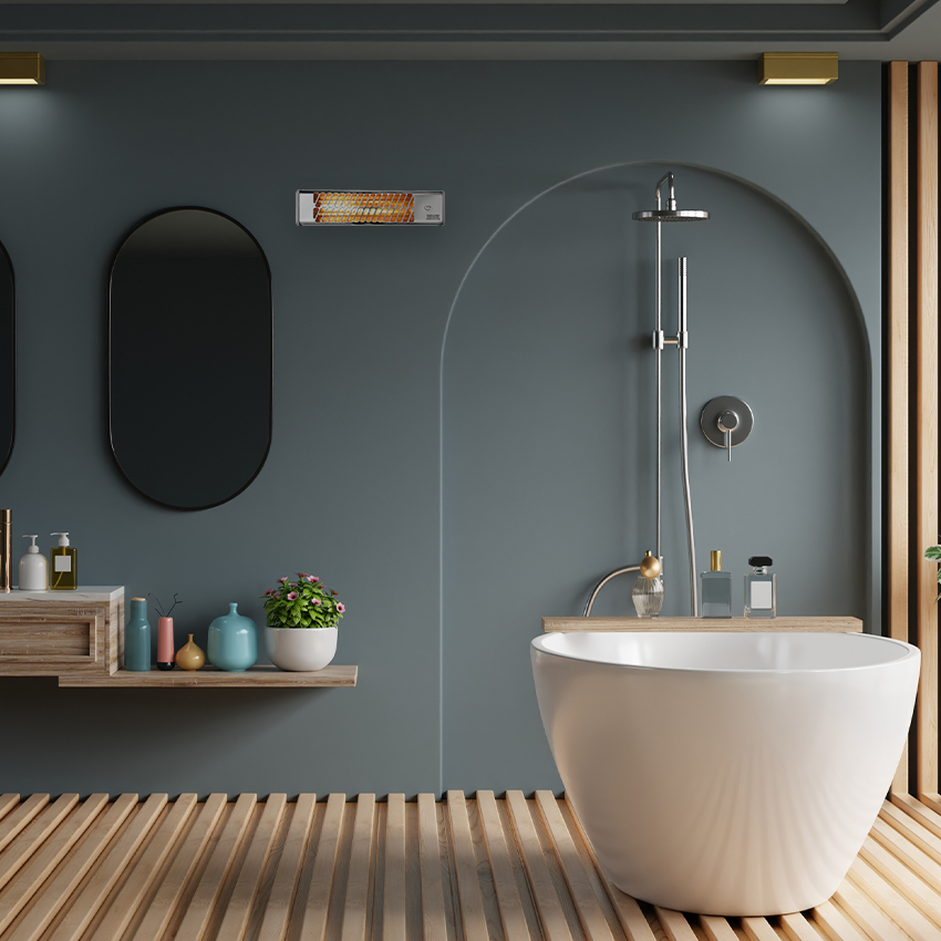 estufa blanca de baño 600-1200w, estufa con sistema antivuelco, estufa con 2 barras de cuarzo