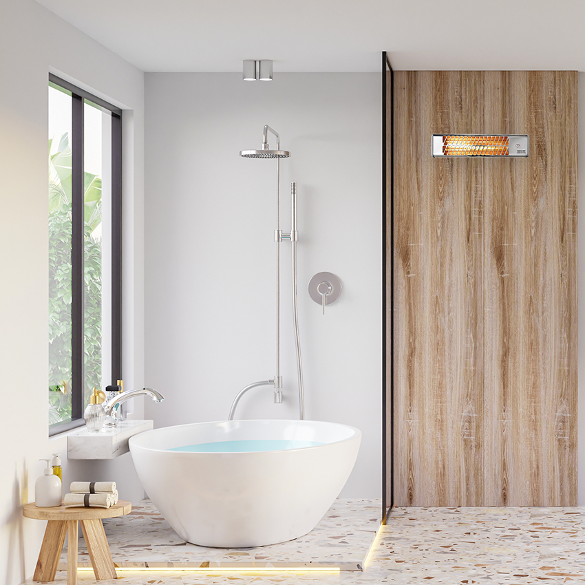 Estufa blanca de baño 600-1200w, estufa con sistema antivuelco, estufa con 2 barras de cuarzo