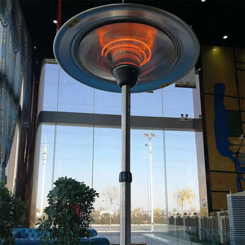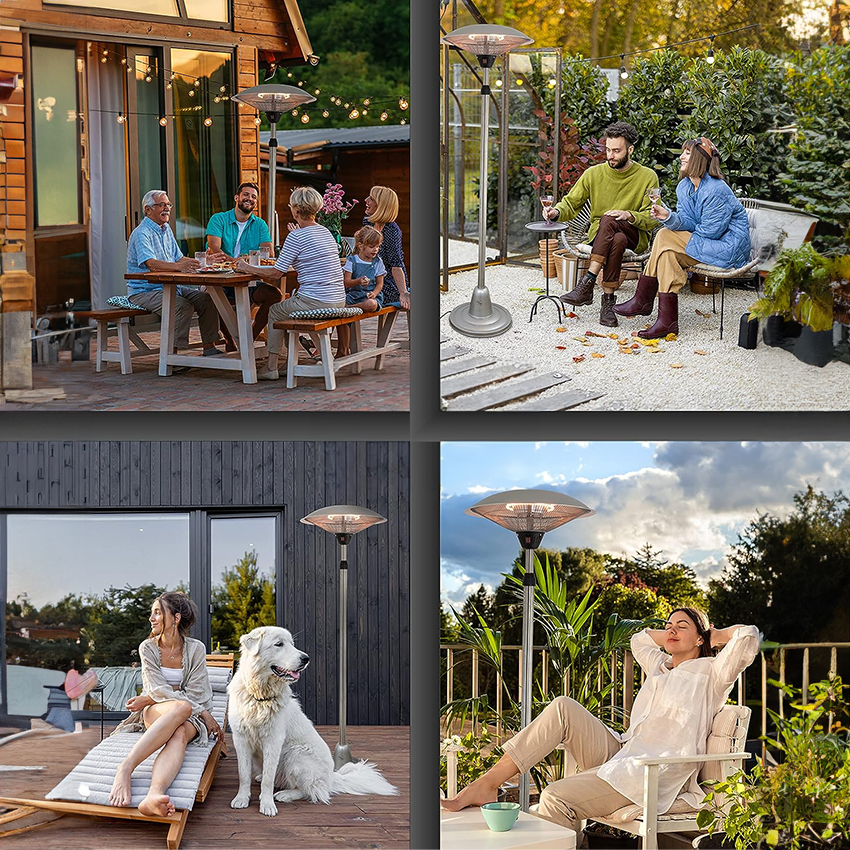 estufa de terraza halógena de 3000W. Ideal para calentar espacios al aire libre con eficiencia y estilo. Perfecta para disfrutar de noches agradables en tu patio o jardín.