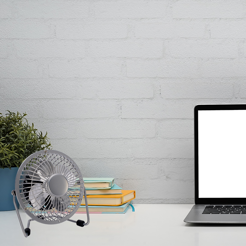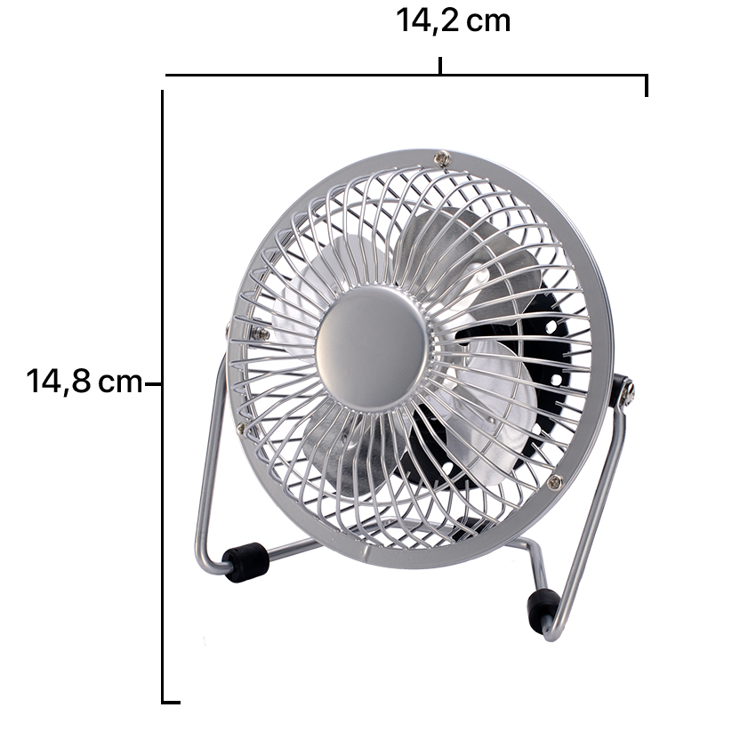 Mini ventilador cromo de sobremesa serie Bulerías, mini ventilador 2,5W 5V orientable, ventilador práctico, alimentación USB.