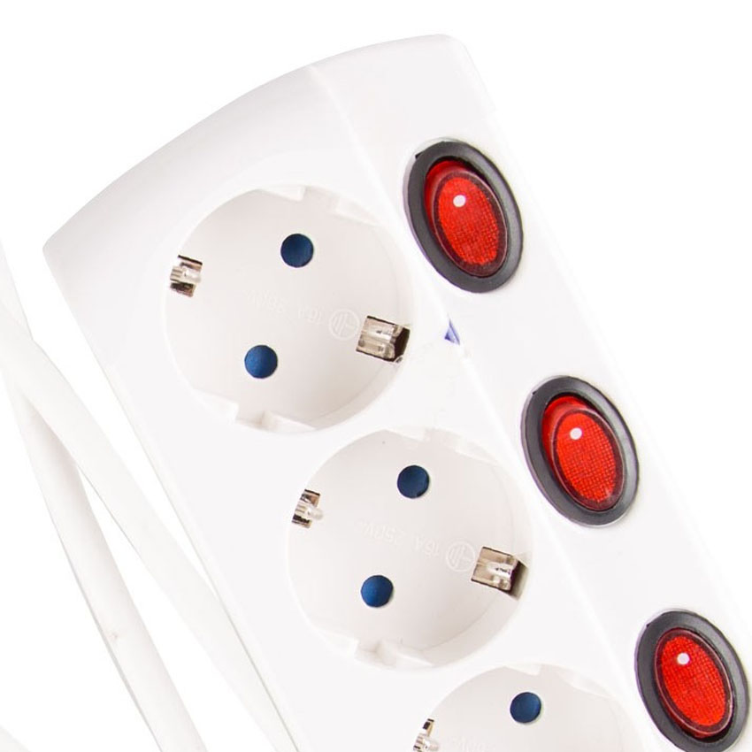 • Regleta blanca de 3 enchufes con interruptor individual
