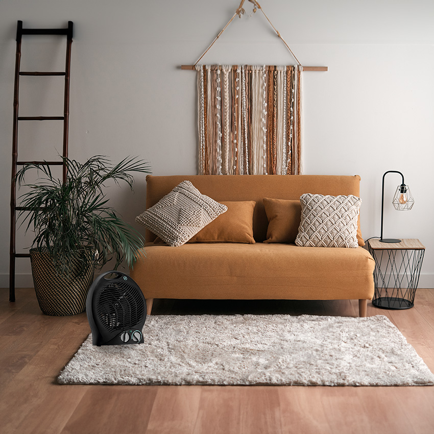 • ➡️ 3 funciones: ventilador, aire cálido y aire caliente, con luz indicadora de funcionamiento