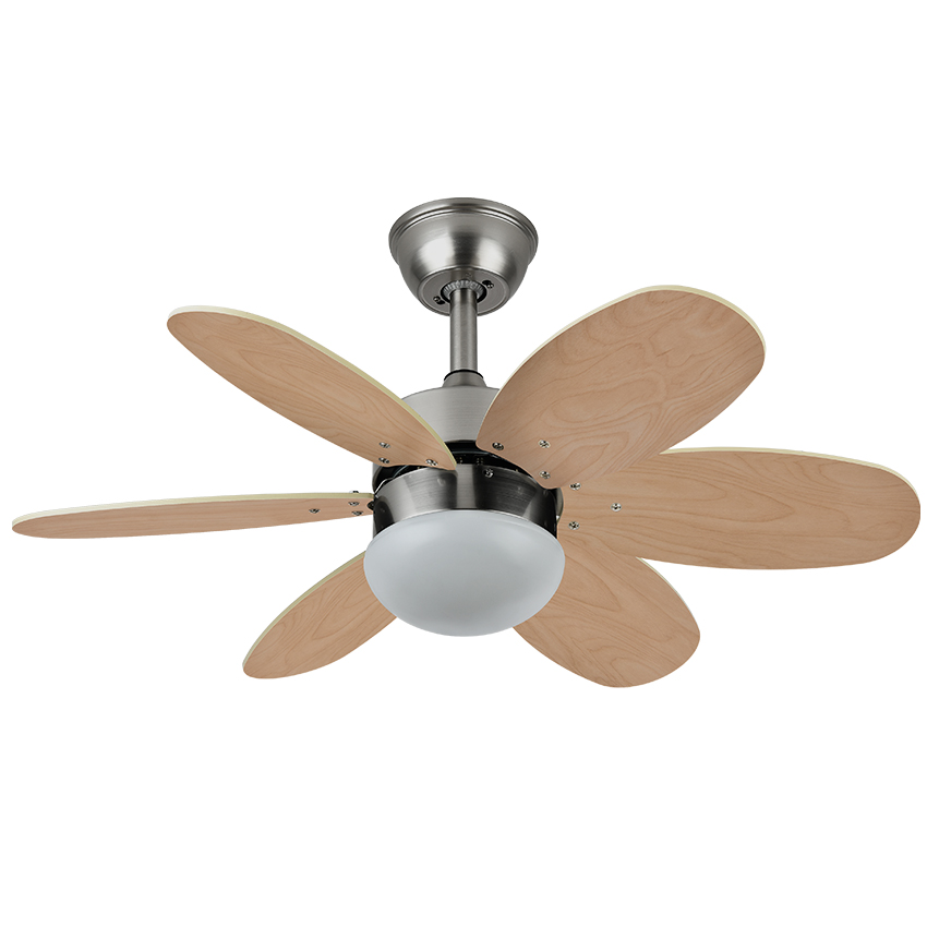 Ventilador níquel, con 6 aspas reversibles haya/plata, control remoto y temporizador, ventilador con aspas reversibles, 2 casquillos E27